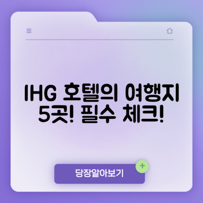IHG 호텔에서의 특별한 여행을 위해 알아야 할 5곳의 추천 명소를 소개합니다. 당신의 다음 여행을 위한 실용적인 가이드를 준비했습니다.